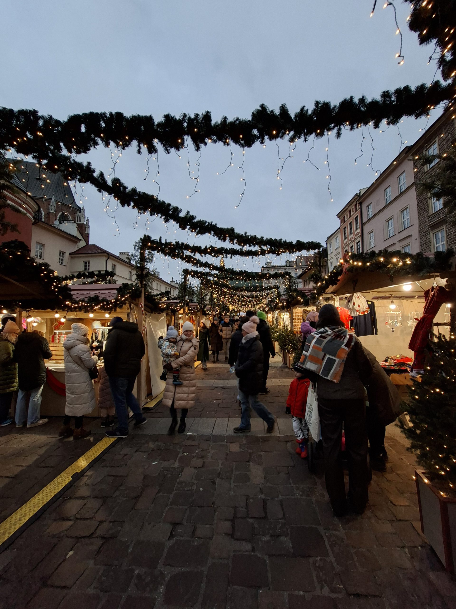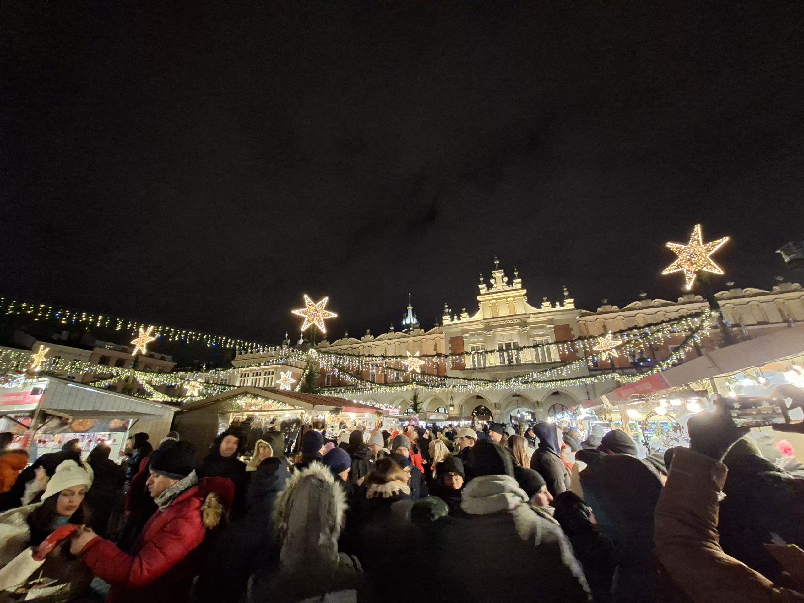 La serata è proseguita con una visita al mercato dei tessuti (Sukiennice) nella piazza del mercato centrale. La piazza ospitava anche il mercato natalizio principale, ricco di bancarelle dove piccoli artigiani e designer esponevano le loro creazioni.